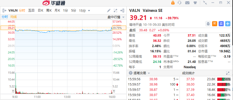Valneva(VALN)股价昨日暴涨36%,该公司报告了一项Ⅲ期试验的顶线结果,显示其灭活、佐剂的COVID-19候选疫苗VLA2001达到了其共同主要的终点。