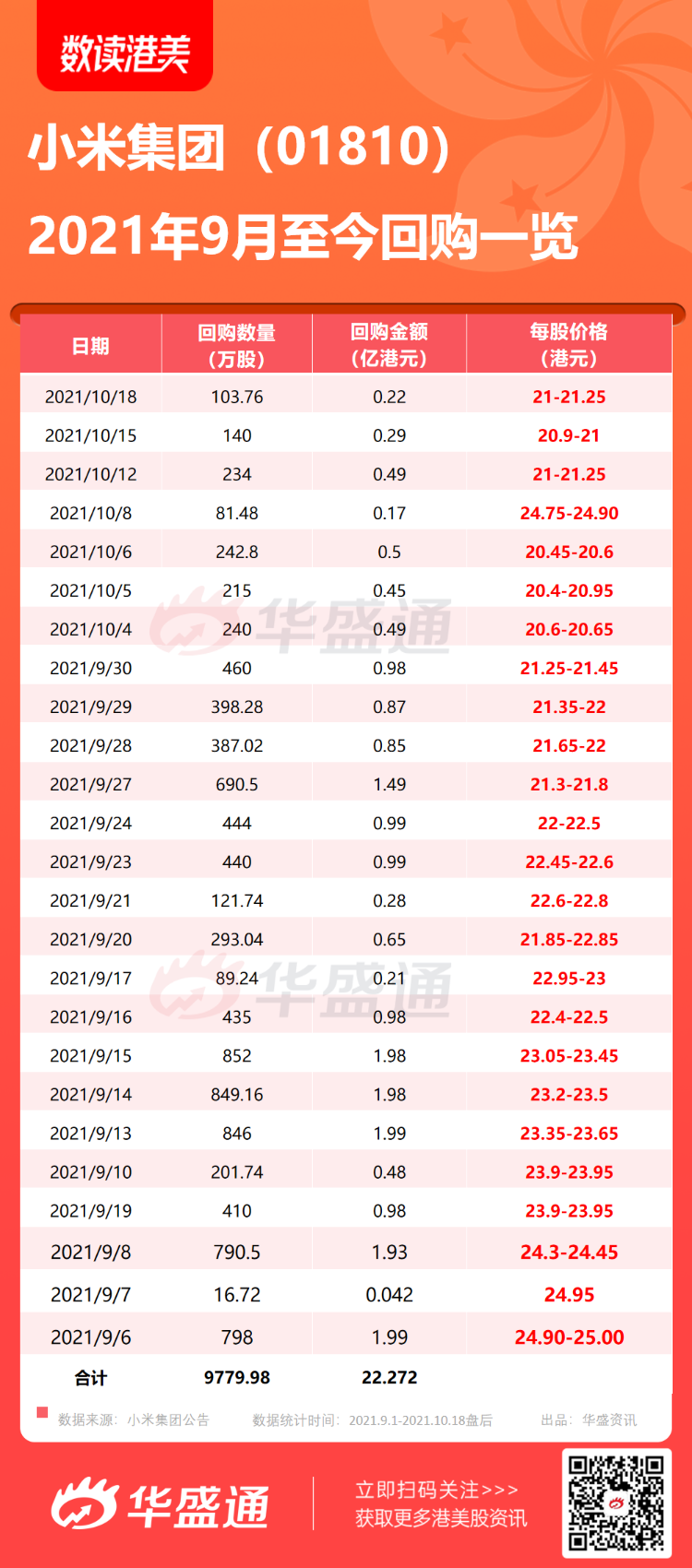 而小米9月至今累计回购25次,耗资超22亿港元。今年累计回购达45次,耗资超80亿港元,距离其3月11日提出的百亿回购计划已完成80%。科技股的连续回购,也是最近港股科技股企稳的重要多头力量。