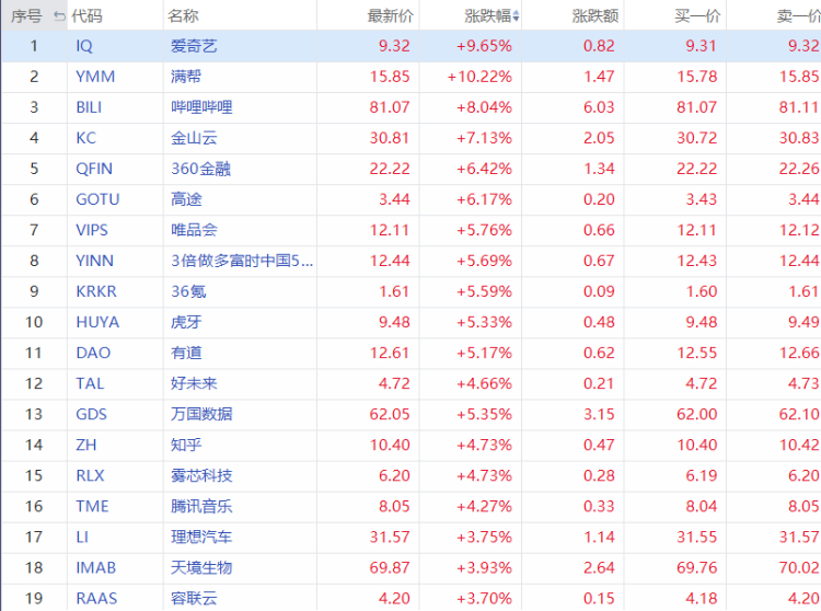 华盛资讯10月19日讯,今日开盘,热门中概股多数上涨。