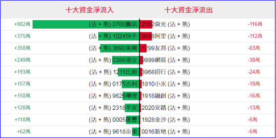 淡仓(认沽证及熊证)方面,周二腾讯、快手、美团等相关淡仓录部分资金净流入部署;舜光、阿里相关淡仓获少量资金净流出套现。