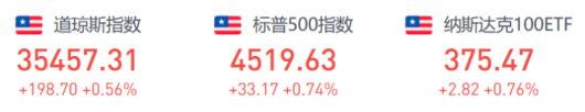 截至周二收盘,标普500指数连续5个交易日上涨,并重新站上4500点。道指涨198.70点,或0.56%,报35457.31点;纳指涨107.28点,或0.71%,报15129.09点;标普500指数涨33.17点,或0.74%,报4519.63点。
