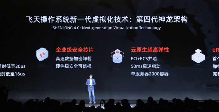 阿里云宣布推出第四代神龙架构,这是飞天云操作系统新一代虚拟化技术,首次搭载全球唯一的大规模弹性RDMA加速网络,网络延迟整体降低80%以上,首次将云计算带进5微秒时延时代。