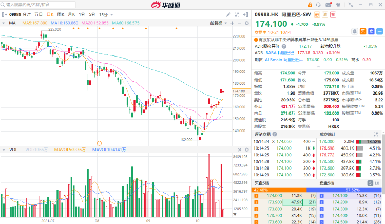 受多重利好影响,阿里巴巴近期股价亦出现明显反弹,而此前近一年时间公司股价区间跌幅超过55%。
