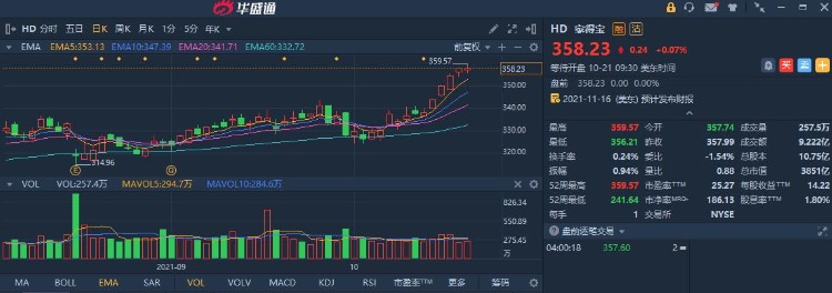 - 高盛表示,家得宝将继续实现增长,甚至能够媲美去年的强劲表现。虽然在2021年下半年,家得宝和其他零售商一样,相比之下不太好,但迄今为止家得宝一直都显示出了“一层更上一层楼”的能力,在2021年第二季度仍然实现增长并第三季度头两周继续正增长。高盛将家得宝的目标价从376美元上调至了390美元。