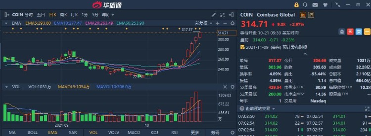 - 周二,美国首只比特币期货ETF $BITO 成功上市,上市两日累计涨超8%。该ETF上市有可能促进数字货币的进一步交易,而Coin作为比特币交易平台有望间接收益。