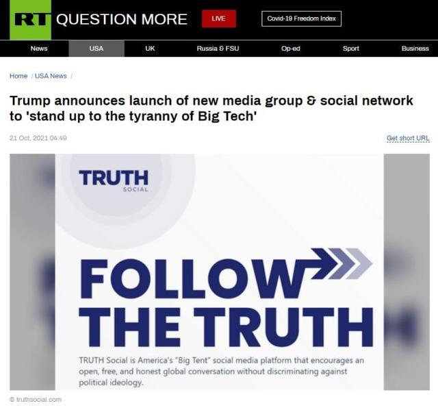 据报道,美国前总统特朗普在20日宣布推出自己的社交媒体平台——“TRUTH Social”(真实社交),同时还宣布了一个全新的媒体公司——特朗普媒体科技集团(TMTG)。他表示,“TRUTH Social”应用程序将在明年初的黄金时间面世,并将成为硅谷“自由派媒体联盟的竞争对手”。