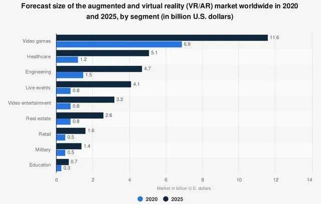 增强和虚拟现实(VR)技术至2025年将会提高游戏部门的收入约11.6亿美元