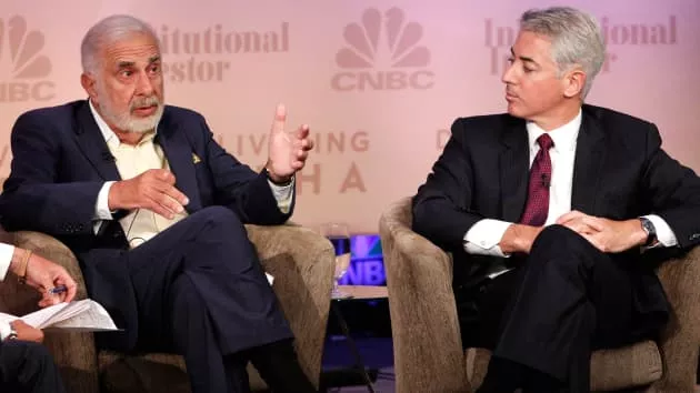 卡尔·伊坎(左)与比尔·阿克曼(右),摄于2014年CNBC Institutional Investor Delivering Alpha Conference