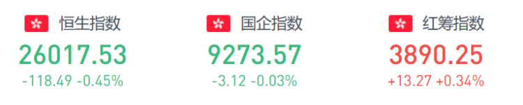 截至周四收盘,恒指收跌0.45%报26017点,国指收跌0.03%报9273点,恒生科技指数收跌0.82%报6636点。内险股涨幅居前,中国平安涨7.54%,中国人寿涨超2%,中国太保涨近3%。