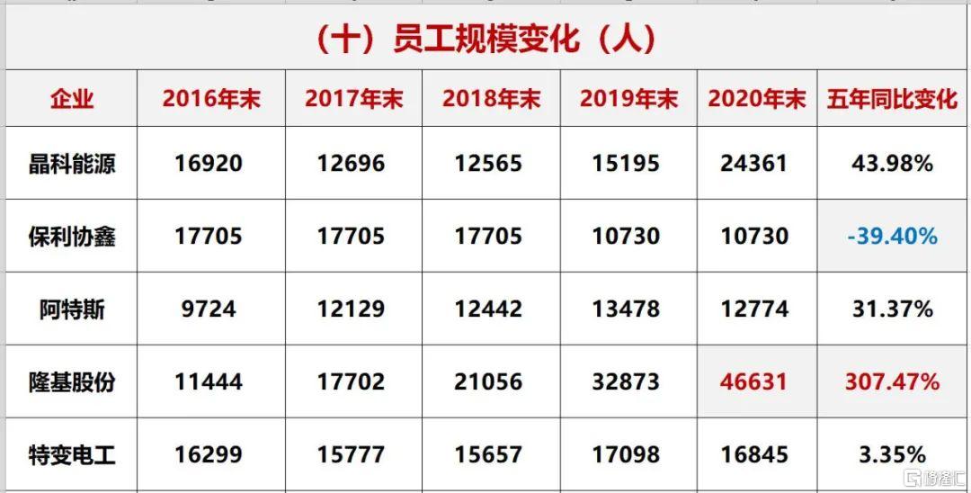 电池片环节:截止2020年末隆基股份电池片产能已经超越通威股份,成为行业第一。通威五年间电池片产能也增长了7.09倍,一直保持快速的扩张势头;