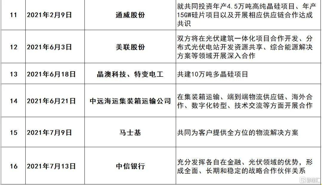 有句话说的好:诗和远方很重要,但与谁同行更重要。以下是我们统计的,从2020年1月1日至2021年7月底,15家光伏龙头企业的“合纵连横”,即巨头们签订战略合作的情况。