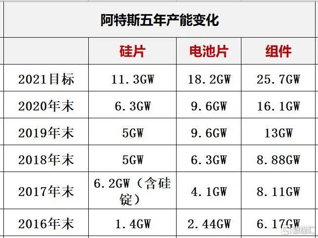 以下是十大光伏巨头各自的产能变化: