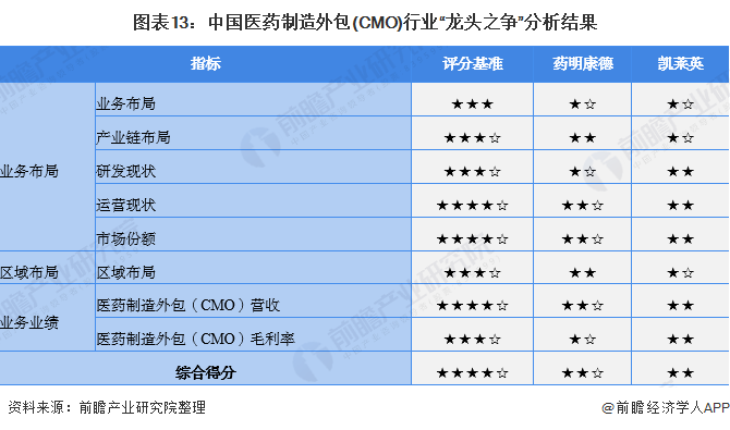在医药制造外包(CMO)行业中,业务布局、市场份额、医药制造外包(CMO)营收等均是体现公司医药制造外包(CMO)经营规模的重要体现,因此,基于前文分析结果,前瞻认为,药明康德在营业收入、市场份额、运营现状等方面占据较大优势,在医药制造外包(CMO)行业占据领先地位。