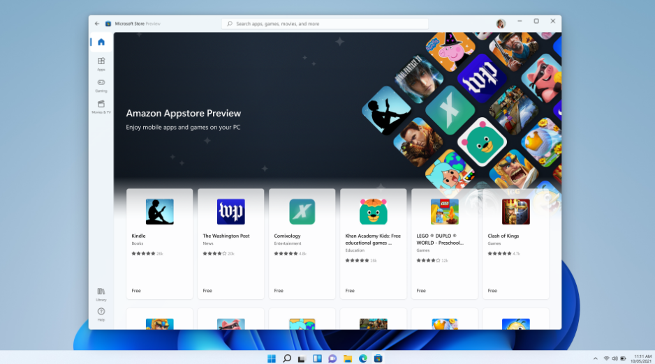 IT之家了解到,Win11 的安卓子系统包括 Linux 内核和基于Android开源项目(AOSP)版本 11 的 Android 操作系统。它作为 Amazon Appstore 安装的一部分通过 Microsoft Store 分发。