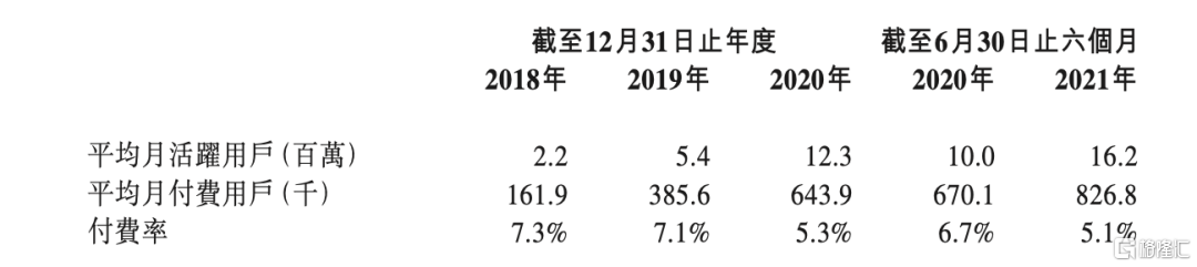趣丸网络表示,公司整体收入增长主要是由增值服务增长以及在2020年下半年推出的音频娱乐服务所推动,具体反映在月活用户的增长以及月付费用户的增长。招股书显示,公司平均月付费用户数目由2018年的16.19万人增加138.2%至2019年的38.56人,并进一步增加67%至2020年的64.39人。2021年6月30日,平均月付费用户达到82.68万人,同比增长23.4%。