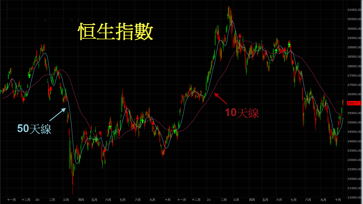 凤凰网港股|今日(22日)恒生指数10天移动平均线由下而上升越50天移动平均线,发出今年第三次的「小型黄金交叉」讯号(下简称「黄金交叉」讯号)。从廻溯测试(backtest)角度看,这讯号是否意味后市好看高一线呢?