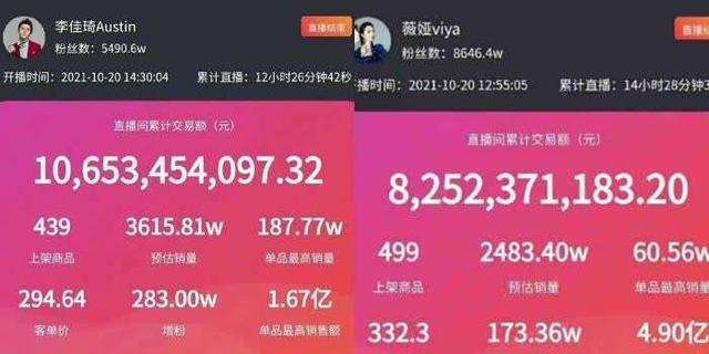 有数据表明,李佳琦薇娅俩人直播带货一天,顶上市公司一年业绩——从以上述李佳琦、薇娅二人预售合计成交额达到189亿元来看,这一天的销售数据甚至超过了4000多家上市公司一年的营收。
