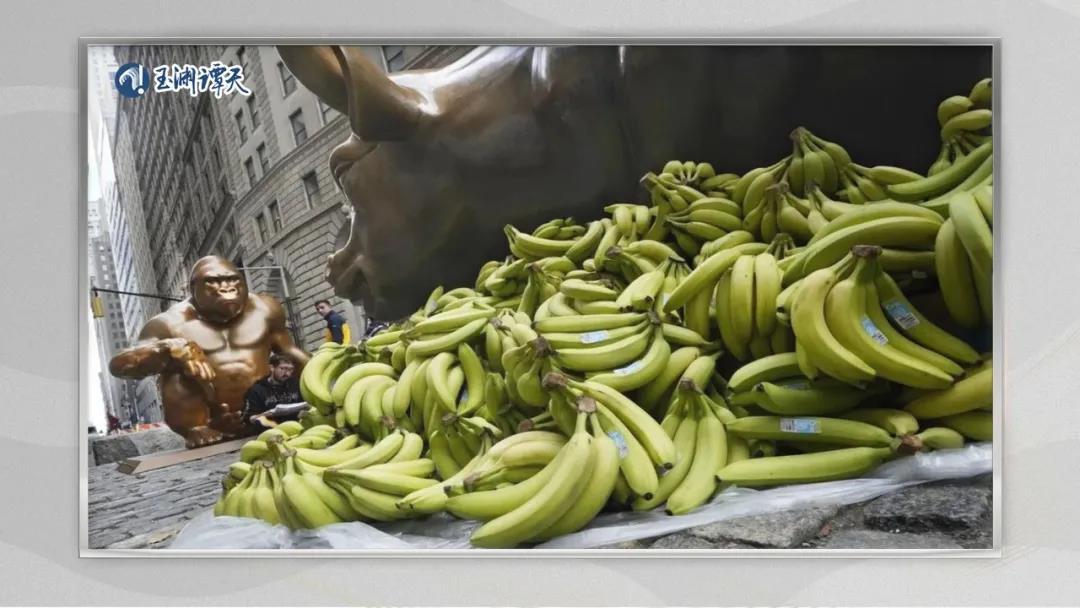 在他们随手写下“高级的烦恼”时,华尔街著名地标建筑——华尔街铜牛的旁边被放置了一万根香蕉,对面则出现一座新的大猩猩雕塑。