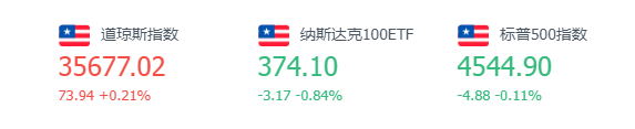截至上周五收盘,道指涨73.94点或0.21%,报35677.02点;纳指跌125.50点或0.82%,报15090.20点;标普500指数跌4.88点或0.11%,报4544.90点。