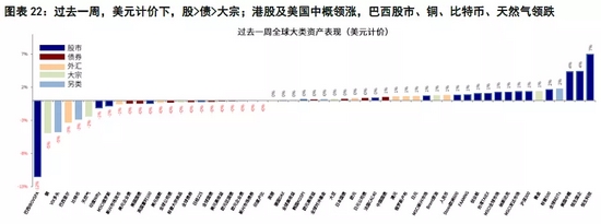 ►资产表现:股>债>大宗;大宗回调、通胀预期推动利率抬升,港股领涨