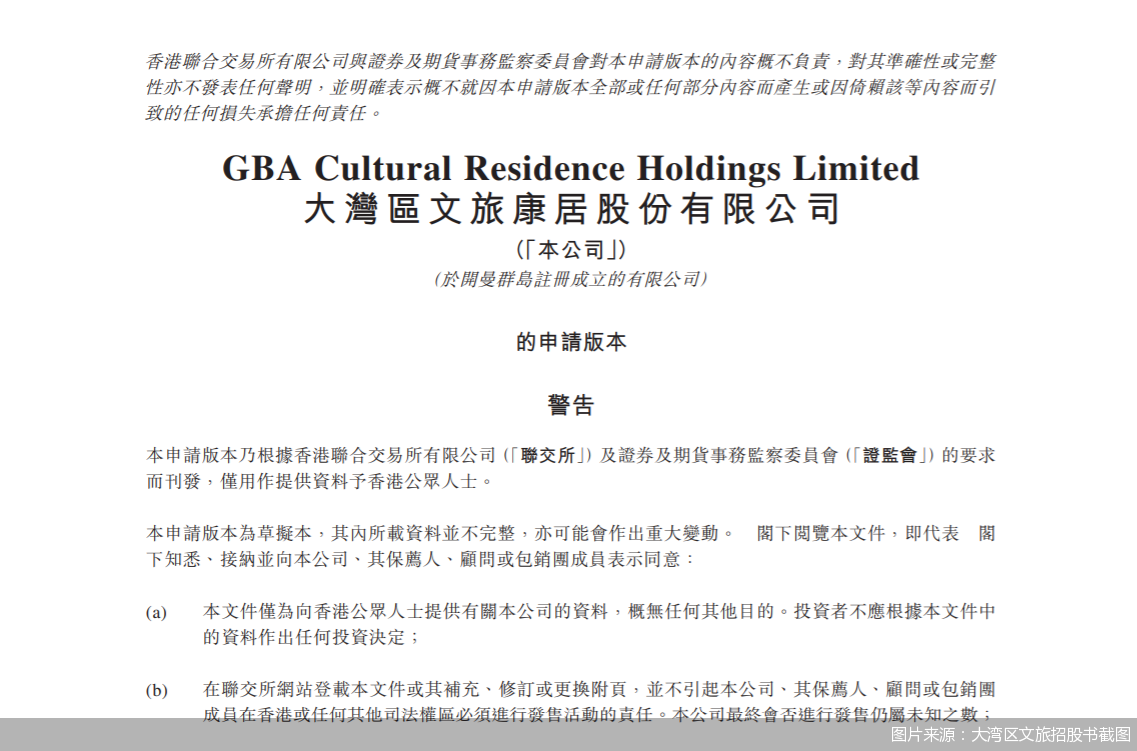 10月22日,中国文旅集团再一次递交了新的招股书,并更名为大湾区文旅康居股份有限公司。