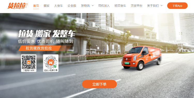 货拉拉(Lalamove),创立于2013年,成长于粤港澳大湾区,是一家从事同城/跨城货运、企业版物流服务、搬家、零担、汽车租售及车后市场服务的互联网物流商城。截至2021年5月,货拉拉业务范围已覆盖363座中国内地城市,平均月活司机62万,月活用户达800万。