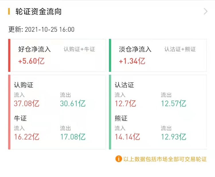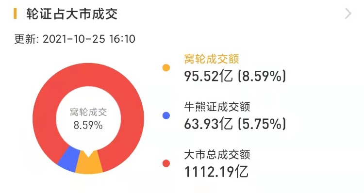 其中,窝轮总成交额95.52亿港元,牛熊证总成交额63.93亿港元。