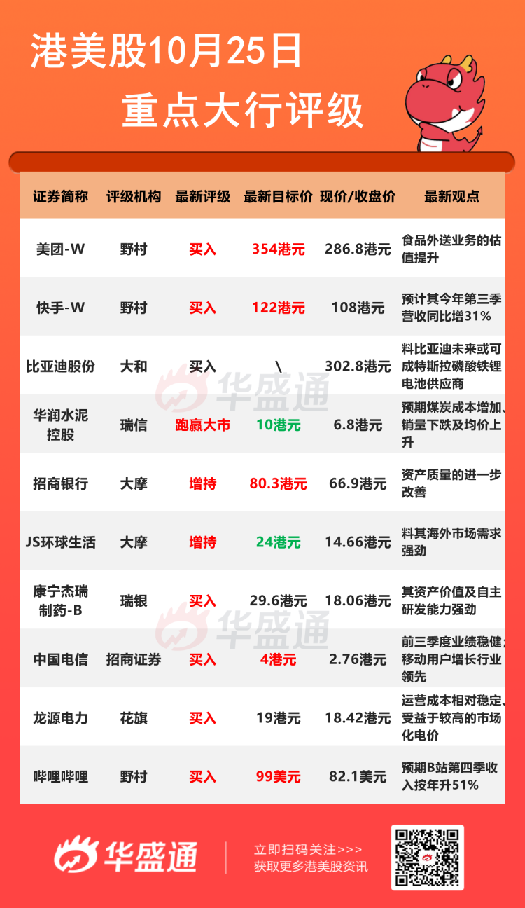 野村发布研究报告称,维持美团-W“买入”评级,目标价由285港元升至354港元,以反映对食品外送业务的估值提升。