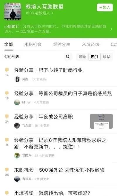 近日,一个名为“教培人互助联盟”的小组出现在豆瓣平台上。小组简介中写道:“希望给迷茫无助的教培人一点温度和力量。”目前,该组成员已接近2000人,不少教培从业者在其中分享自己的转行故事。