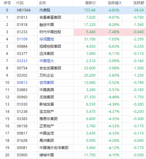 华盛资讯10月26日消息,内房股跌幅扩大,合景泰富跌超9%,融创中国跌超8%,时代中国控股、华润置地跌超7%,旭辉控股跌超6%,中国恒大跌超5%。
