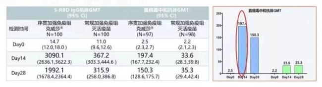 在21届中国生物制品年会上,康希诺生物首席科学家朱涛表示,接种2剂灭活疫苗6个月后,序贯加强1剂克威莎吸入剂型,中和抗体水平相比加强之前升高250-300倍;若同源加强1剂灭活疫苗,中和抗体水平相比加强前升高30倍。