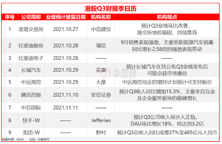 本文整理了近期港股部分Q3财报季名单,一起来看看机构观点吧!