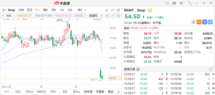 - 加拿大皇家银行:将Snap目标价下调至70美元,维持跑赢大市评级。加拿大皇家银行分析师Brad Erickson将Snap目标价从88美元下调至70美元,但保持对该股的跑赢大市评级。该分析师在一份研究报告中称,产品供应和劳动力短缺对第四季度的广告支出造成压力,但这两个不利因素可能是暂时的,目前看来,市场的情绪可能会转为积极。