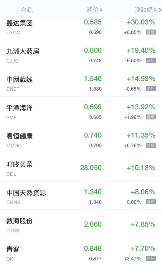 (截图来自新浪财经APP 行情-美股-中概股热门板块)下载新浪财经APP