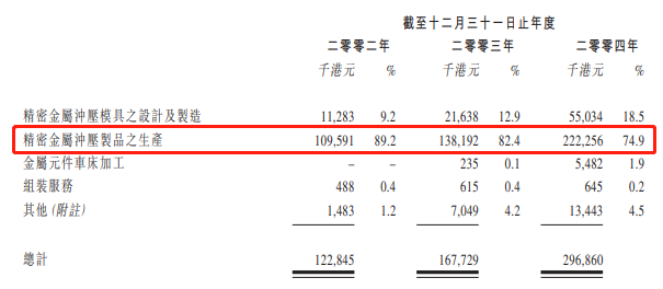 亿和控股全称亿和精密工业控股有限公司,成立于1993年,并于2005年登陆港交所。公司定位为综合性精密金属制模及冲压制品制造服务供应商,上市时公司精密金属冲压制品生产收入占比达到74.9%。