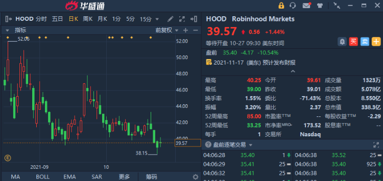 华盛资讯10月27日消息,今日美股盘前,Robinhood(HOOD)盘前跌10.54%,第三季度营收低于市场预期。