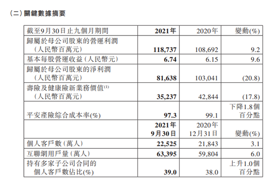 中国平安:前三季度净利润816.4亿元 同比下降20.8%