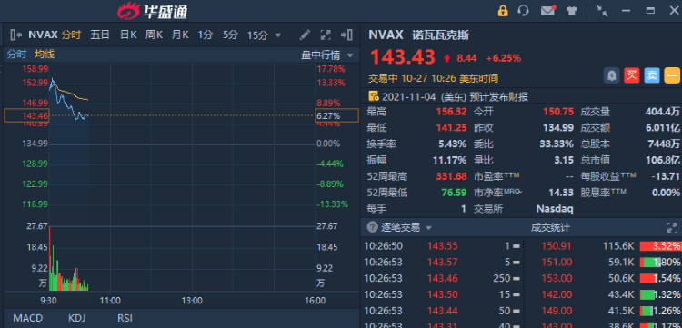 10月27日,诺瓦瓦克斯 $NVAX 现涨超6%,该公司在英国提交新冠疫苗许可申请,并称其他全球监管机构的申请将很快提交。