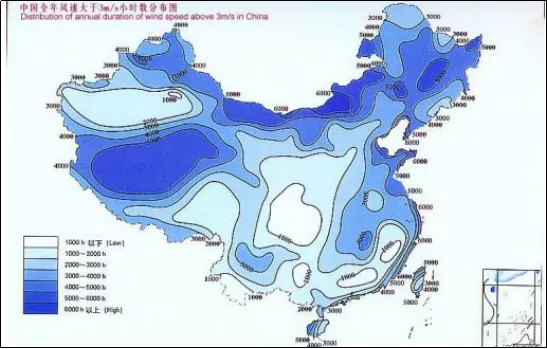 我国海岸线辽阔,海上风能资源丰富,主要集中在东南沿海地区。我国东南沿海及附近岛屿的有效风能密度为200-300瓦/平方米以上,全年大于或等于3米/秒的时数约为 7000多小时,大于或等于6米/秒的时数约为 4000 小时。根据发改委能源研究所发布的《中国风电发展路线图2050》报告,中国水深5-50米海域,100米高度的海上风能资源开放量为5亿千瓦,总面积为39.4万平方千米。 并且还是海上很少有净风期。