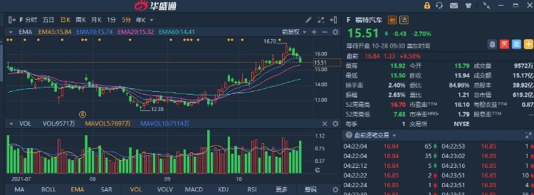 - 两度上调全年业绩指引!福特表示,第三季半导体芯片供应增加及汽车出货量增加,令其业绩优于预期。福特汽车最新公布的全年调整后盈利指引在105亿美元至115亿美元之间,高于此前的90亿美元至100亿美元。该公司维持其对调整后自由现金流在40亿至50亿美元之间的预期。