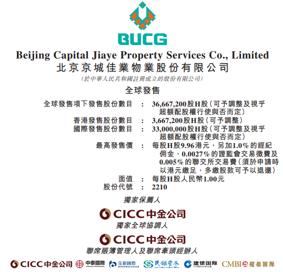 京城佳业(02210):招股价8.28-9.96港元,入场费4024.15港元
