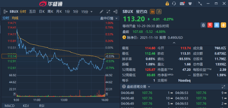 星巴克(SBUX)盘前跌4.88%,第四财季净营收、综合销售额均不及市场预期。