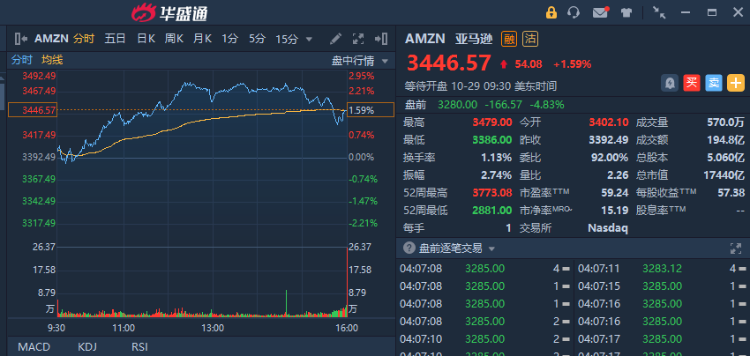 华盛资讯10月29日消息,今日美股盘前,亚马逊(AMZN)盘前跌4.83%,Q3营收及净利润均不及预期/AWS云服务部门净销售额同比增长39%。苹果(AAPL)盘前跌3.65%,自2016年4月以来首次季度EPS未能超过市场预期,以及自2017年5月以来首次季度营收低于预期。