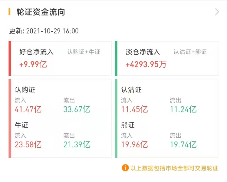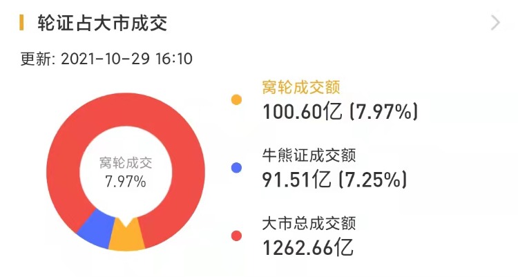 其中,窝轮总成交额为100.60亿港元,牛熊证总成交额为91.51亿港元。