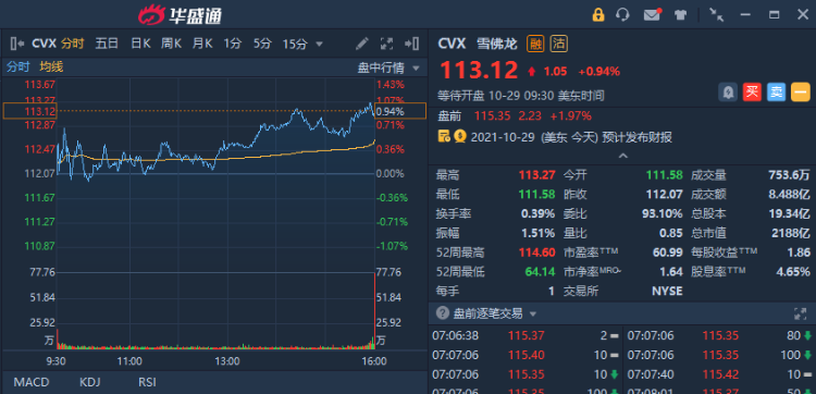 雪佛龙(CVX)盘前涨近2%,Q3营收及净利超预期。2021年Q3净利润61.11亿美元,去年同期亏损2.07亿美元;每股盈利3.19美元,去年同期亏损0.12美元。