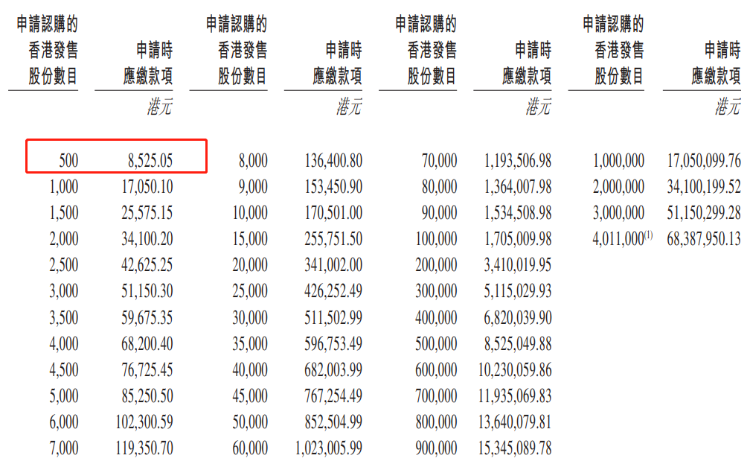 招股详情: