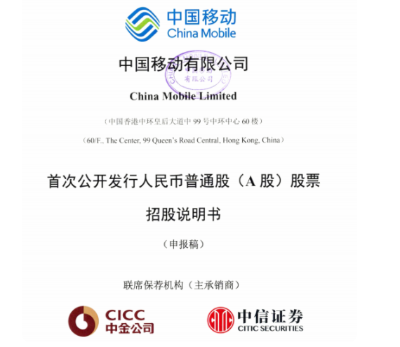 中国移动本次上市的联席保荐机构(主承销商)为中国国际金融股份有限公司和中信证券股份有限公司。
