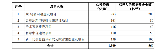 8月18日晚间,中国移动发布公告称,公司首次公开发行A股股票的申请材料已获中国证监会受理。同日,中国移动亦披露A股IPO招股书,公告显示,中国移动拟公开发行不超过9.65亿股A股股份,募集资金将围绕“新基建、新要素、新动能”,推进数智化转型,构建新型数智生态,用于5G精品网络建设、云资源新型基础设施建设、千兆智家建设、智慧中台建设、新一代信息技术研发及数智生态建设等5个项目,总投资共1569亿元,拟投入的募集资金金额为560亿元。