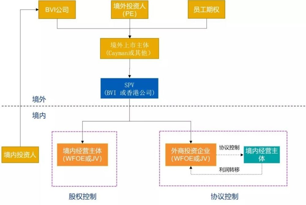 这么做的好处是既满足了在美股或者港股上市的要求,又不会受到国内禁止外资参与部分行业的影响。