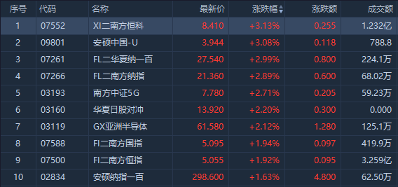 港股市场涨幅前十ETF